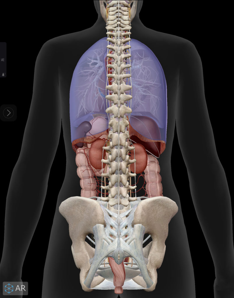 背中側の健康維持で大切な部位は、恥骨、仙骨、骨盤、骨盤と背骨の接続点、脊髄、そして腎臓、脾臓です。