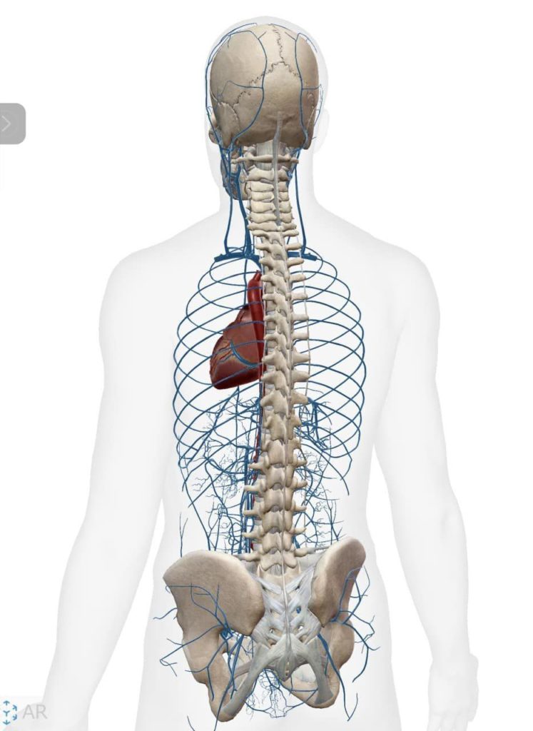 背骨は頭蓋骨から骨盤に繋がっており、脳に続いた脊髄を合わせたものが中枢神経と呼ばれ、背骨の中を通っています。